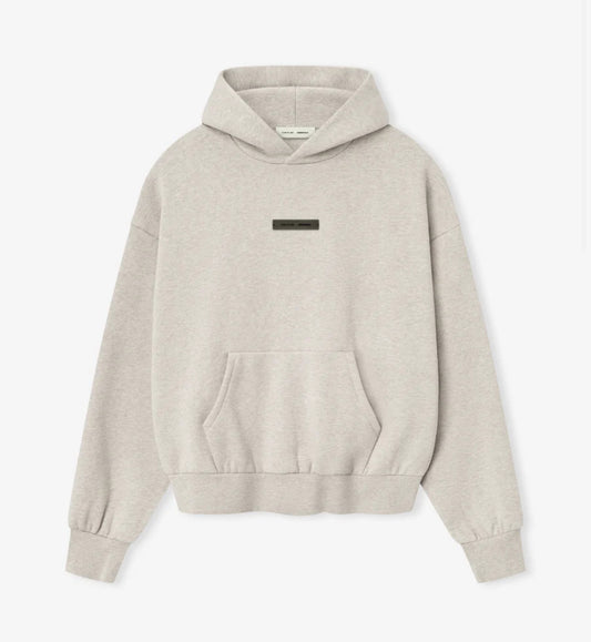 La sudadera con capucha clásica está confeccionada con un núcleo de forro polar de 380 gramos para ofrecer una comodidad y una estructura ideales. Presenta un corte clásico con las proporciones relajadas características de Fear of God. El nuevo logotipo metálico biselado "Essentials Fear of God" aparece en la espalda. Incluye detalles como una sudadera de doble capa, un bolsillo tipo canguro, puños y dobladillo de punto acanalado. La etiqueta de goma "Fear of God Essentials" está cosida en la capucha y la manga.